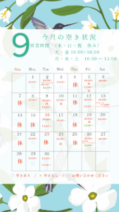 9月の予定です